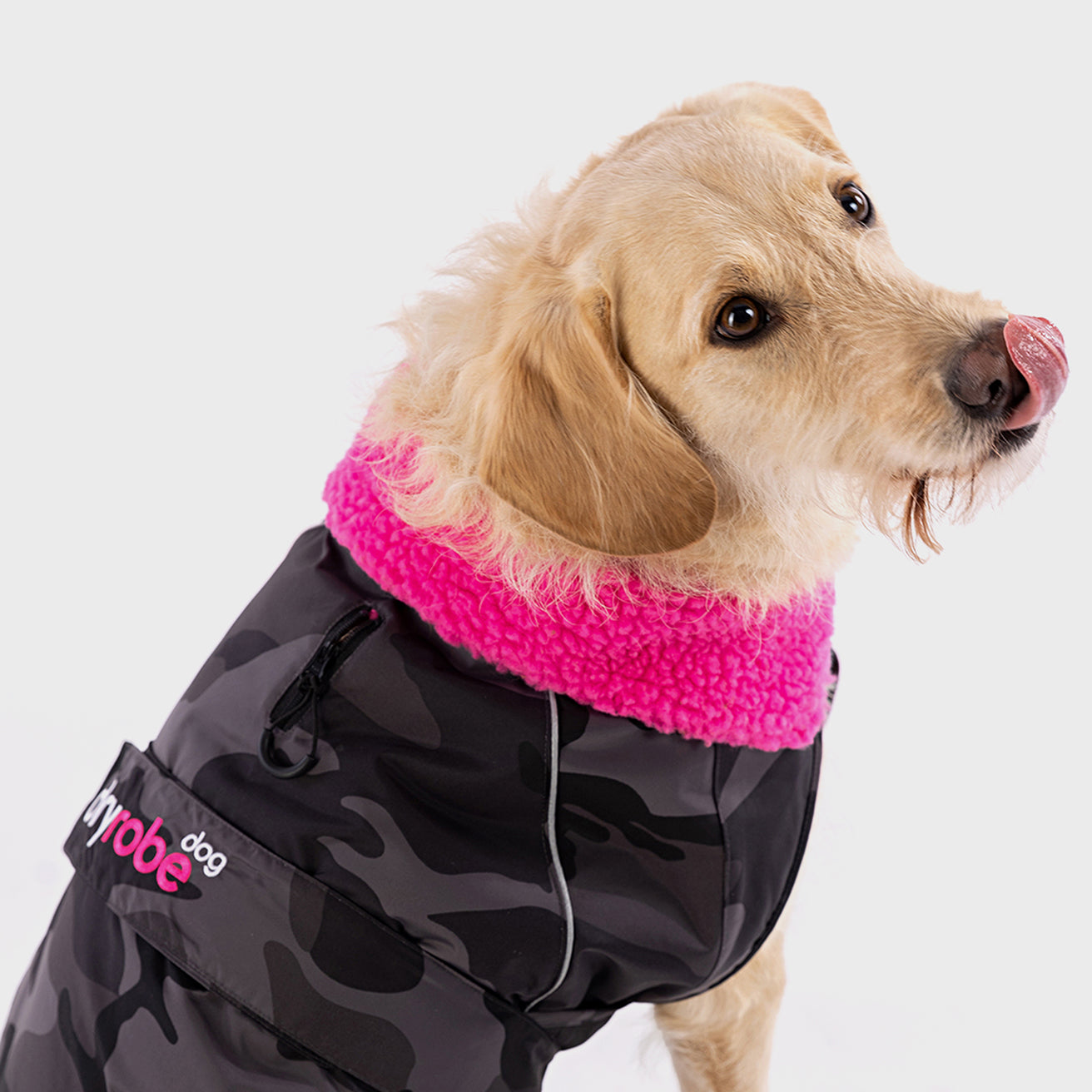 Dryrobe® Dog Coat - Black Camouflage Pink