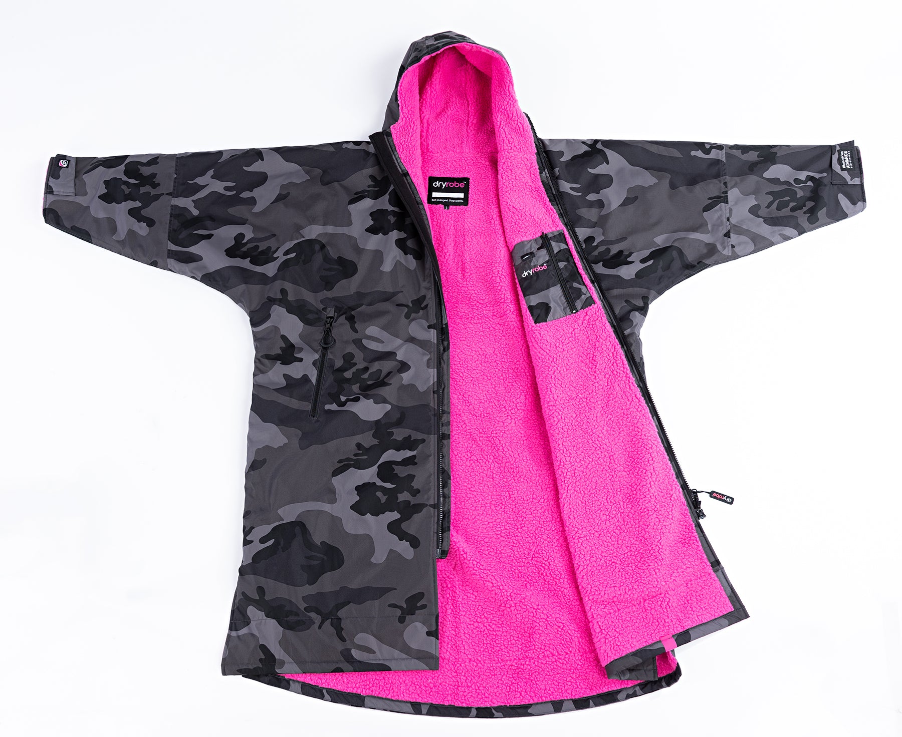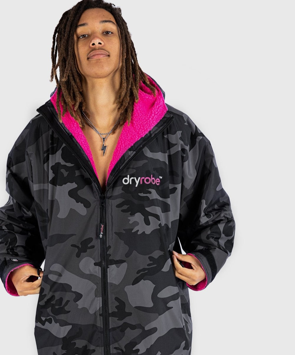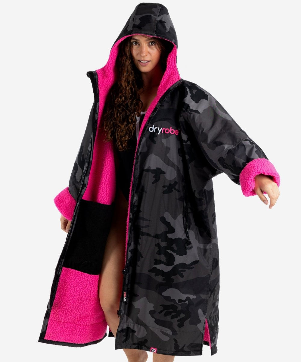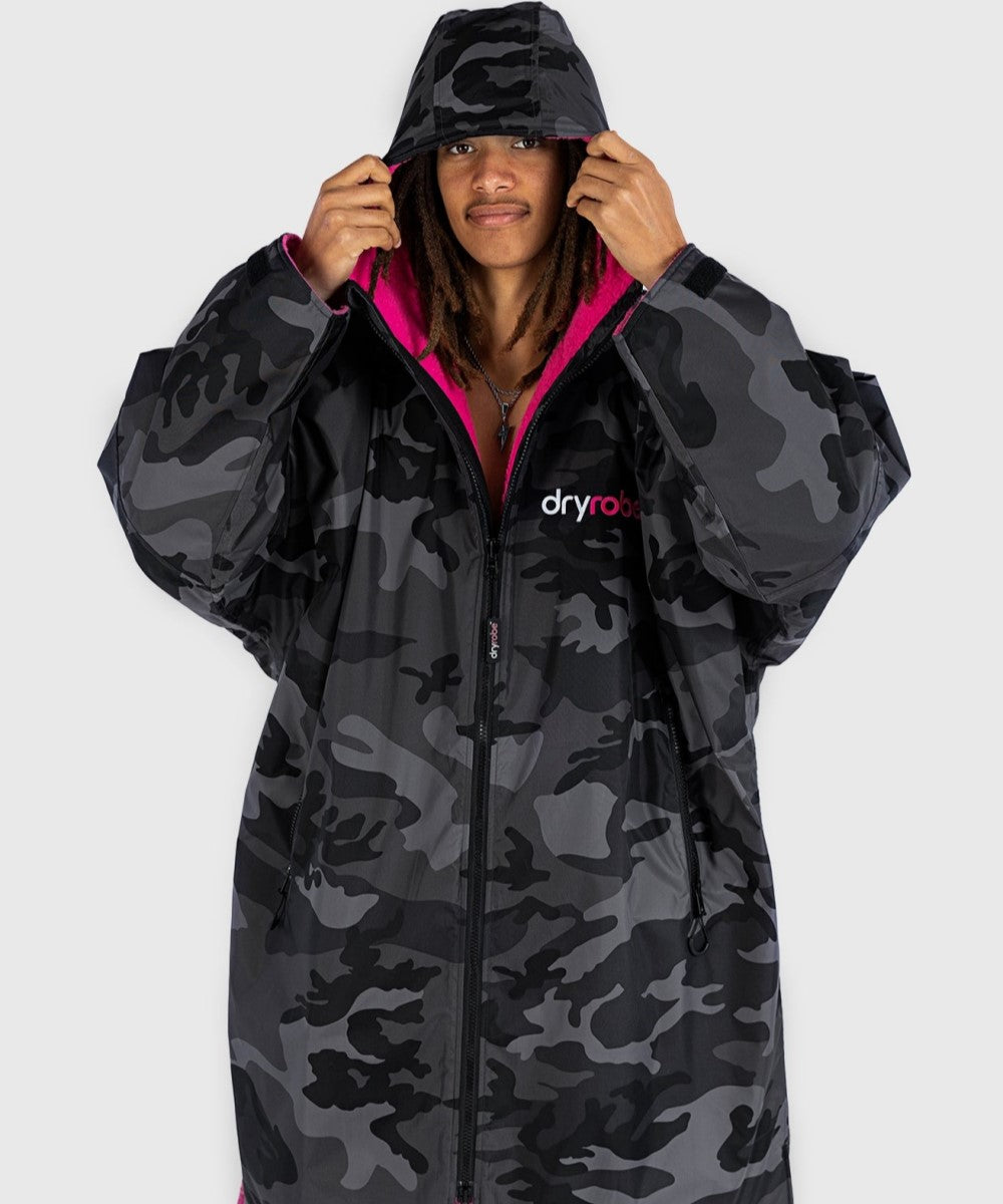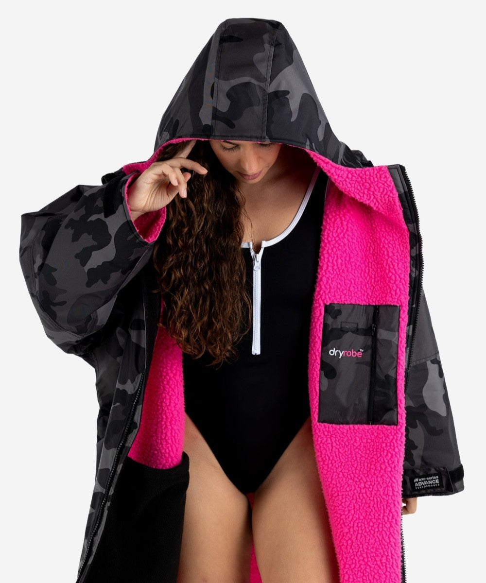 Dryrobe® Advance Unisex Long Sleeve - Black Camo/Pink